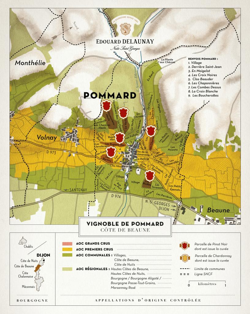 This cuvée, named in honor of Monsieur and Madame Cyrot-Chaudron following their donation of vineyards to the Hospices de Beaune in 1979, draws its character from four outstanding terroirs of Pommard. Les Riottes, with its deep, clay-rich soils, contributes marked density to the mid-palate. Les Charmots and Les Bertins, with their stonier composition, provide an airy and refined attack. Lastly, the power of this cuvée likely originates from the red earth of the gentle slopes of Les Rugiens (lower section). Its aging potential is often exceptional.