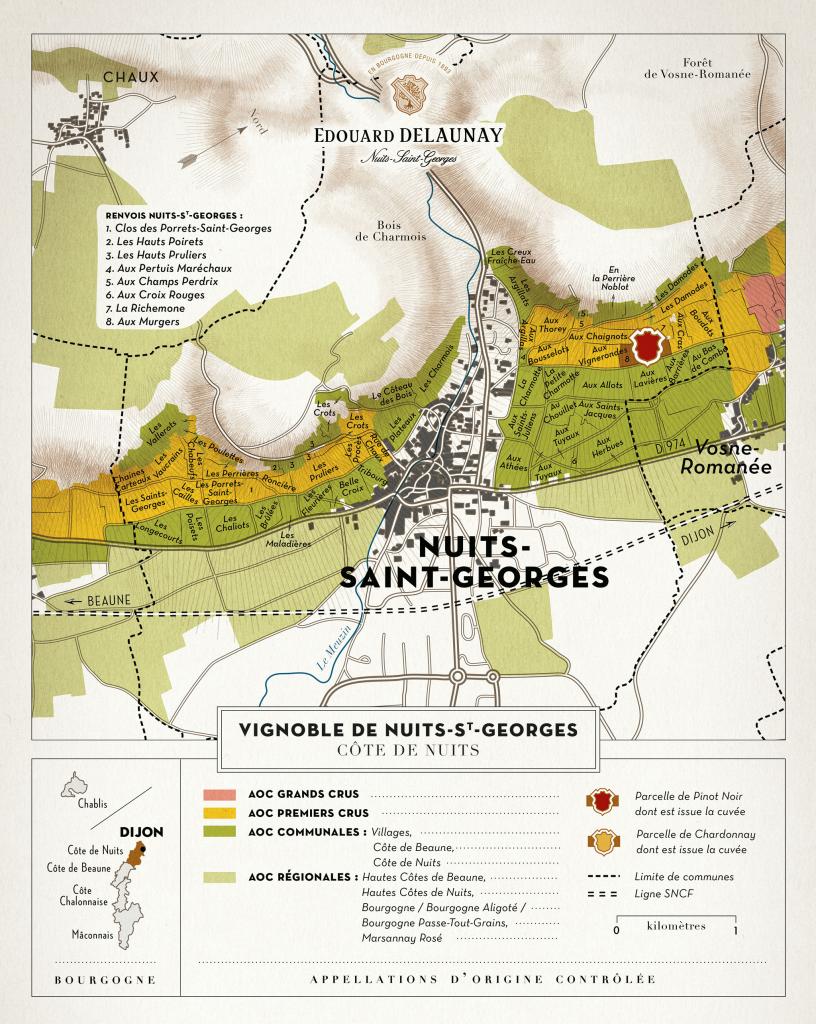 One of the main characteristics of Nuits-Saint-Georges’ wines lies in the great diversity of its terroirs, diversity that is found in the different styles of wines that vary greatly depending on where the grapes are grown. Based in Nuits-Saint-Georges, the House of Edouard Delaunay illustrates this multiplicity by offering several selections from Premier Cru climats located both north and south of the village.