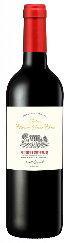 'Château Côtes de Saint-Clair is an emblematic wine from the Vignerons de Puisseguin Lussac Saint-Emilion. This wine comes from the production of the Dupeyrat family, a family of cooperative winemakers since 1948. Located on the slopes of the place called Saint-Clair in Puisseguin, the plots from which this wine comes (8.75 hectares in total) are mainly composed of merlot.'